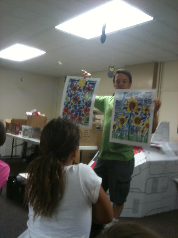 Michael Albert came to do a session at our local library. He talked about how he became and artist and showed us some of his work. (My apologies for the bad camera phone pictures once again.)